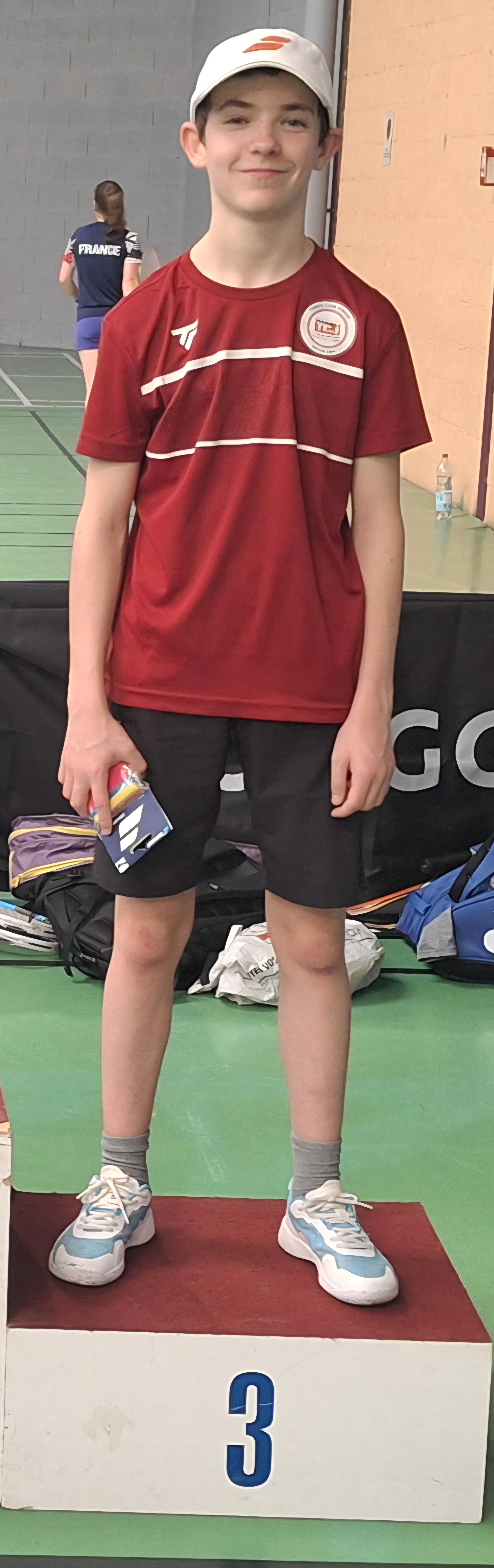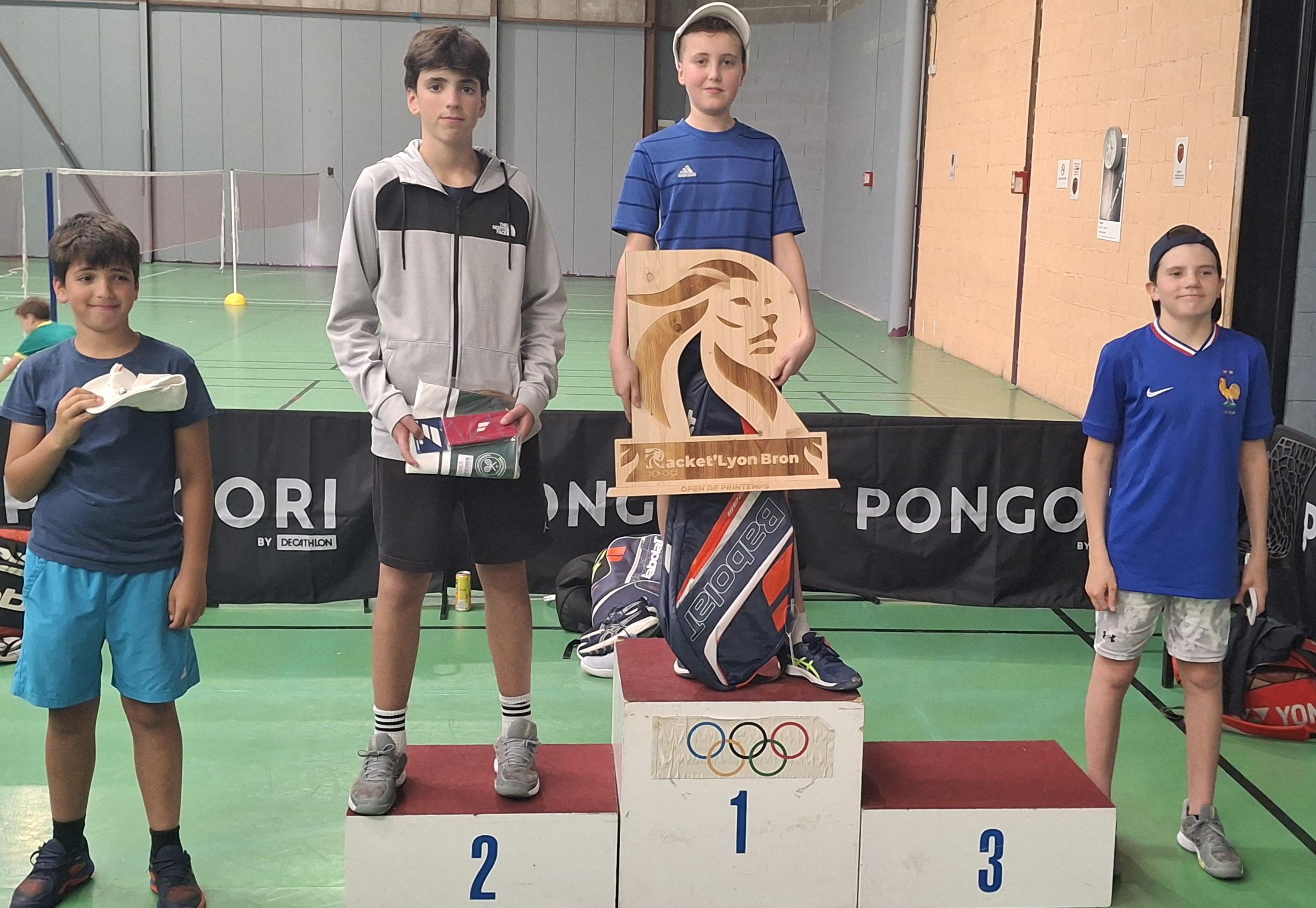En Simple Jeunes (moins de 16 ans), Armand Ryckebush remporte son 1er tournoi, après 3 finales perdues. Il bat Loan Tixier en creusant l’écart au badminton. Pour son 1er tournoi, Anton Boudry prend la 3e place aux dépens de Leny Tixier. On espère revoir Loukas Serville et Adhémar Gonnon qui disputaient à Bron leur 1er tournoi !